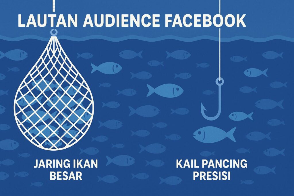 Cek di Facebook Page Insights siapa yang engage dengan post yang pernah di-boost. Buat Custom Audience dari mereka. Lalu buat Lookalike 1% di Ads Manager. Ini cara paling aman untuk migrasi tanpa shock.