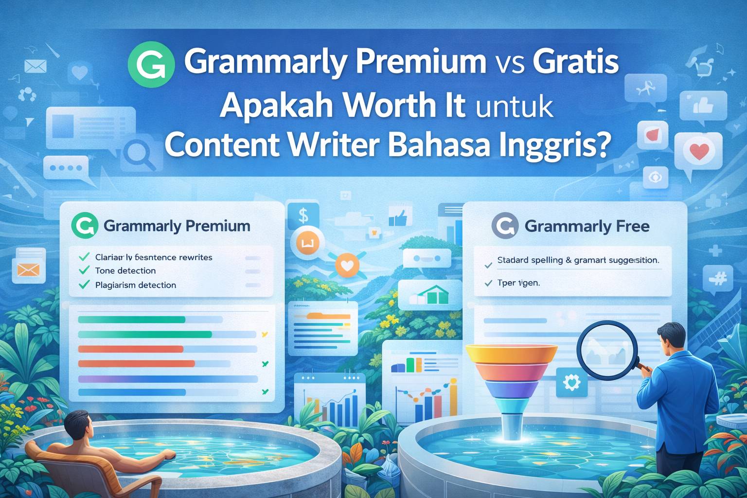 Sebagai content writer yang ngebut deadline tiap hari, kamu tau kan betapa menjengkelkannya nge-review ulang artikel 1000 kata cuma buat mastiin grammar dan tone-nya pas? Rata-rata, proses editing bisa nyedot 30-40% dari waktu total produksi konten. Nah, pertanyaan sejuta dolar ini sering muncul: apakah Grammarly Premium cuma gimmick mahal atau benar-benar bikin invoice kamu lebih tebal?